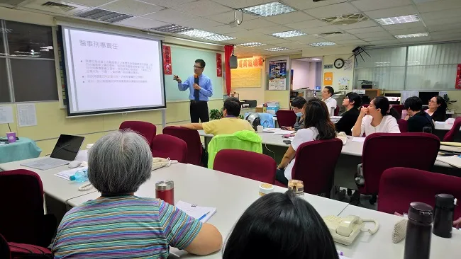 本次參與研討會的朋友們皆為保險業務人員,因此,林亮宇律師利用已身取得國家考試之人身保險代理人的經驗,將保險專業知識結合法律實務上之內容分享,簡明地為在座朋友們說明:醫療行為可能會牽涉到哪些法律責任?醫師可能會遇上何種刑事犯罪和民事賠償?以及醫師業務責任保險與醫療機構責任保險為何?