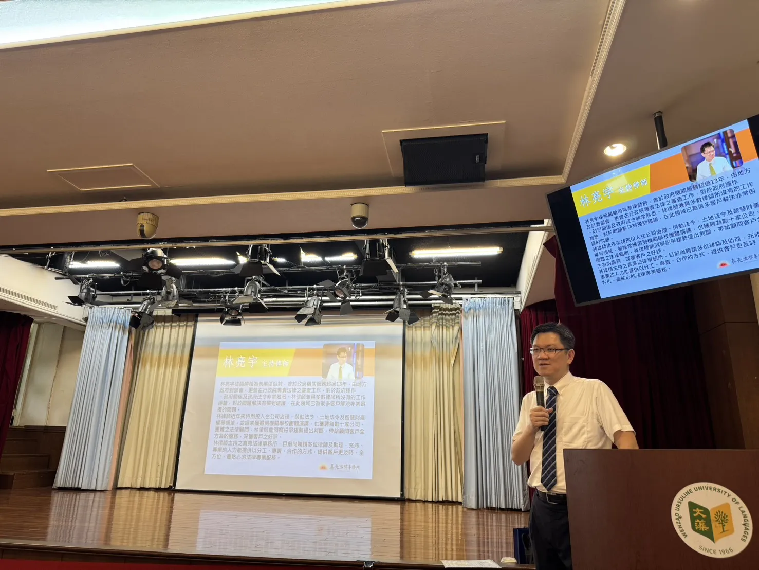 ☀️真亮法律事務所林亮宇律師很榮幸能受到文藻外語大學的邀請,向學校的境外生宣導法律的基本常識,以利學生們在生活中能夠對自己的權利有所瞭解。此次講授題目「人在江湖走,法律必須懂——學生不可不知的法律常識(Essential Legal Information for Students in Taiwan)」,分享了學生常見在簽訂房屋租賃契約時要注意的眉角、在外打工勞動契約該怎麼看,以及若在工作時遇到職場霸凌時該怎麼辦,演講最後以生活中常見的侮辱、誹謗、誣告、個資法規範介紹作為收尾。