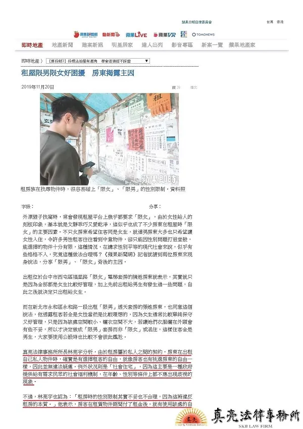 許多人在租屋時都曾面臨限制房客性別的問題,並為此困擾。