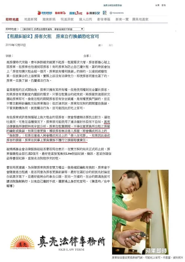 有時遇到房客積欠租金卻遲遲不願搬離租屋處,房東為了收回房屋便會使用更換門鎖的手段,使房客不得其門而入。